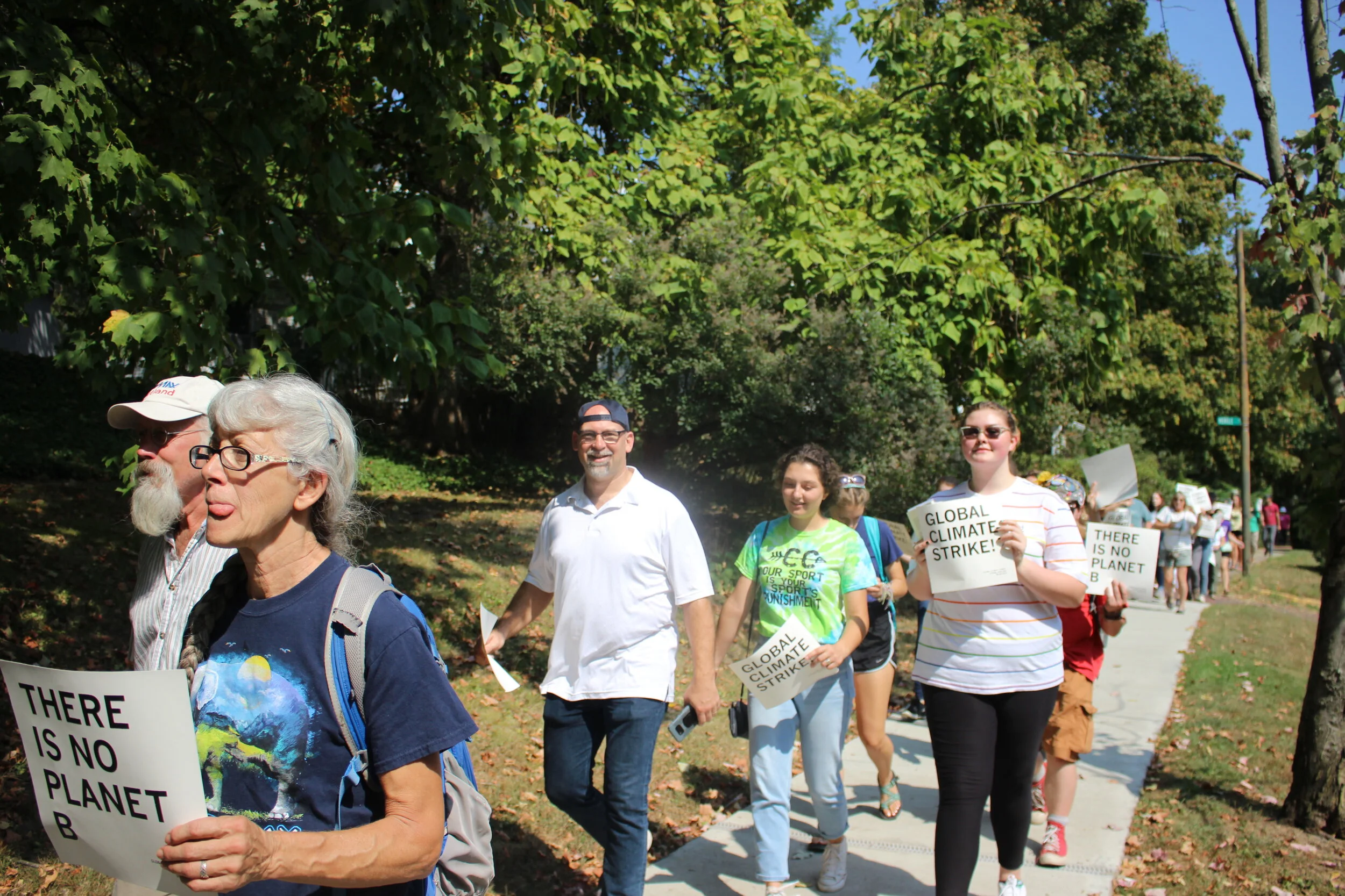 Strikers demonstrate on East State Street, calling for action on climate change. Photo by Tim Zelina.