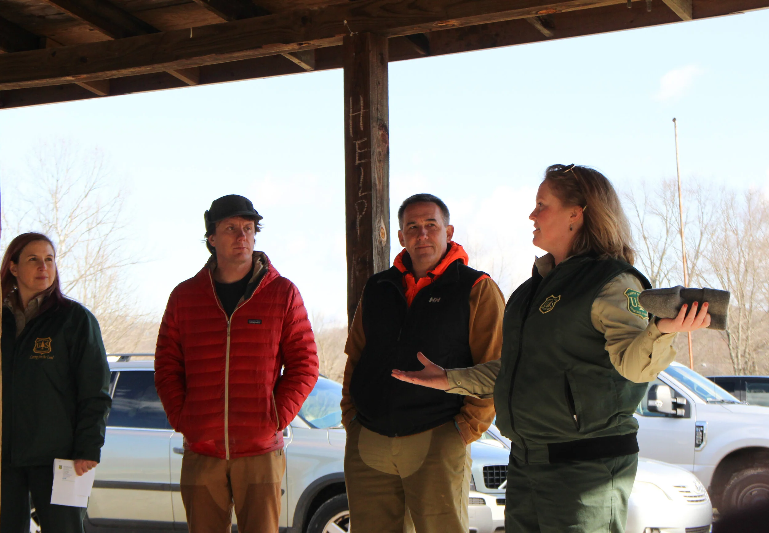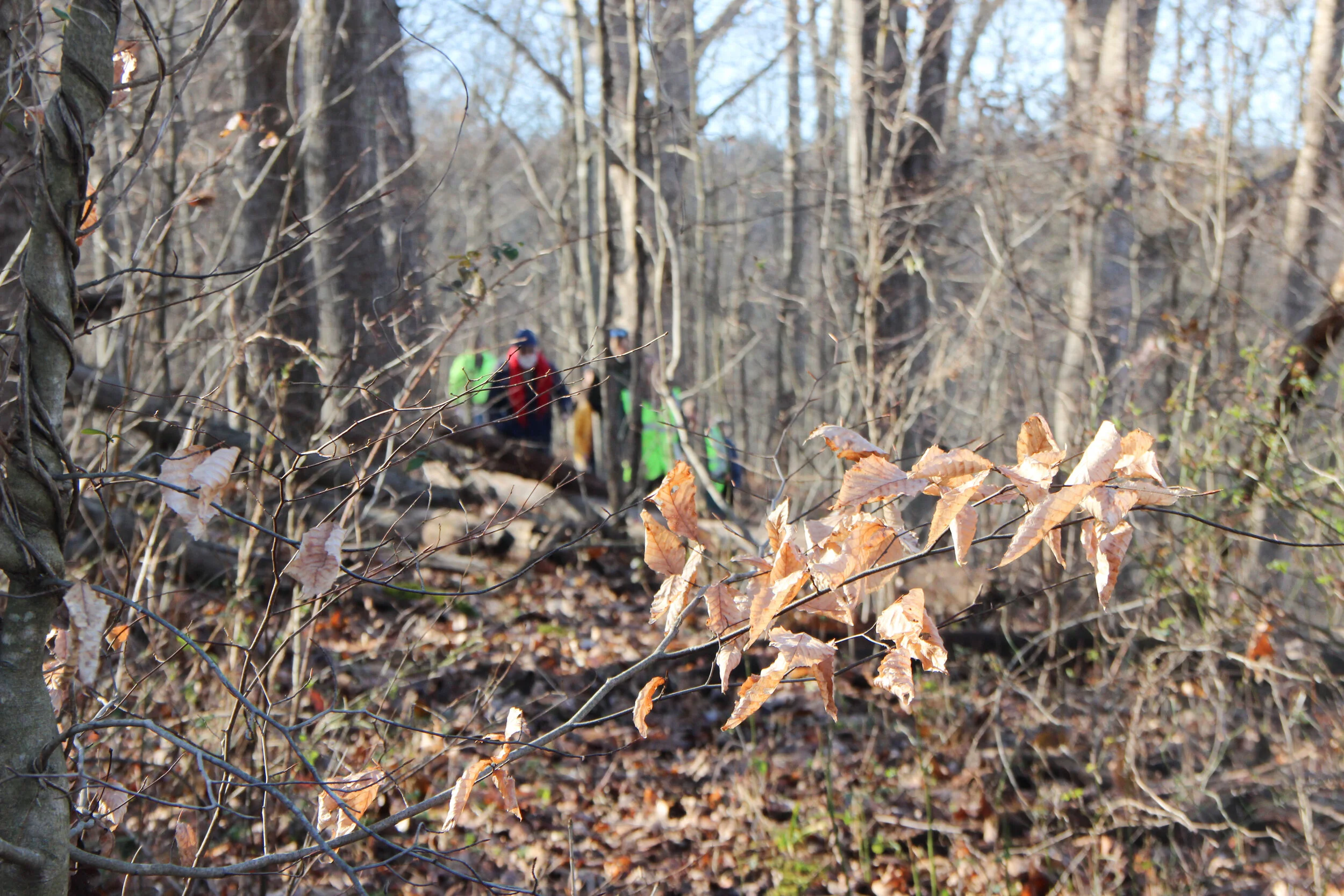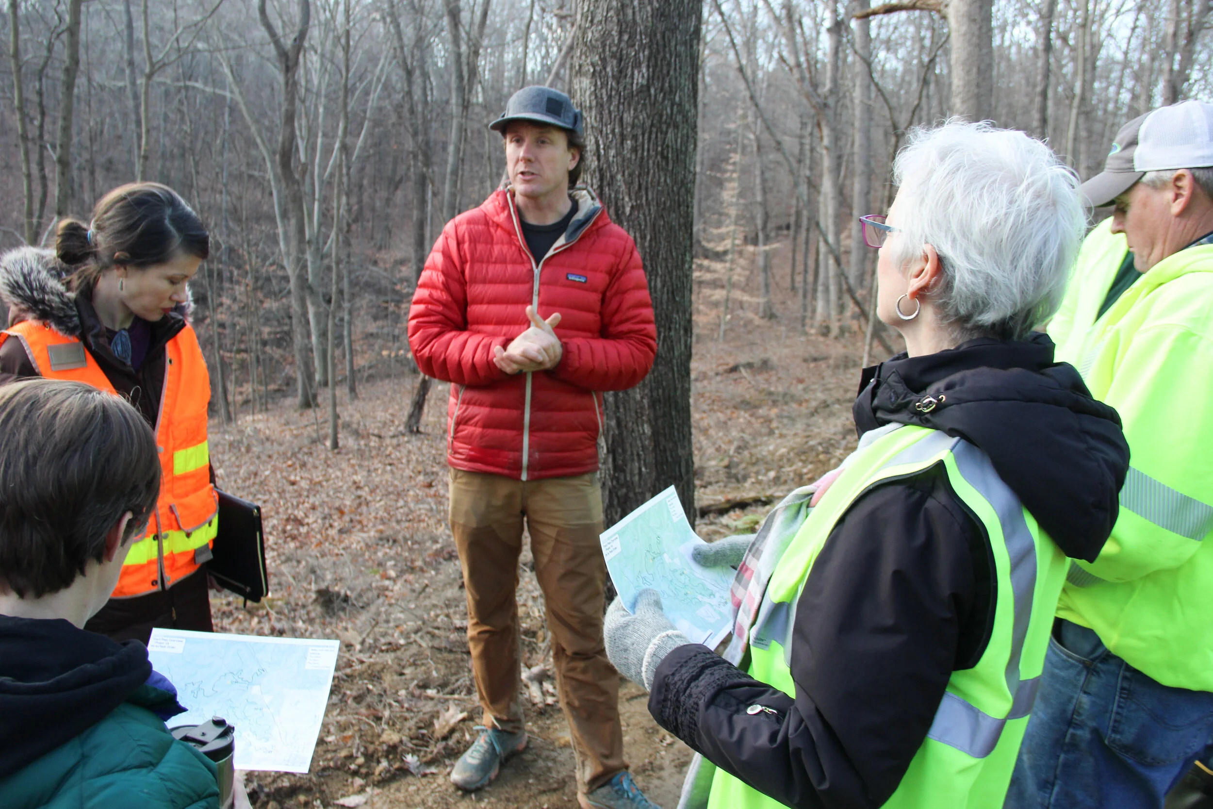 At the beginning of the meeting, hikers enjoyed hearty “Baileys cookies,” and some wore neon vests while traversing the wooded area so that hunters wouldn’t mistake them for game. Some hunters use the Baileys tract of land during hunting season.