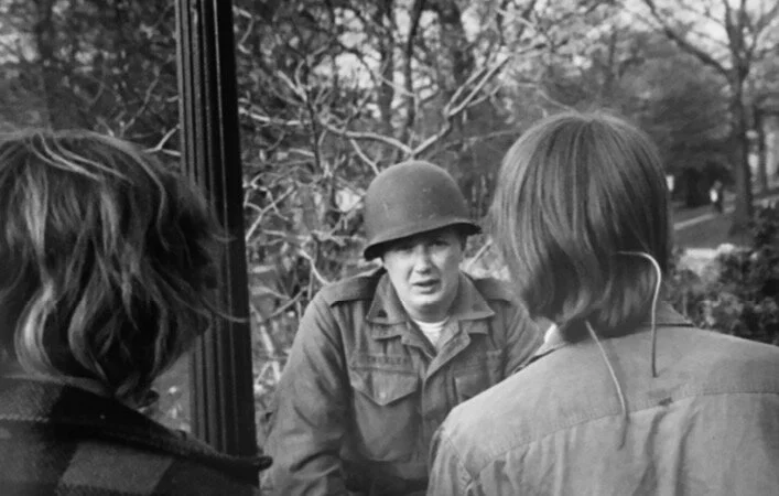 National Guardsman talks with two people at Kent State University. Photo courtesy of Dean Kahler.