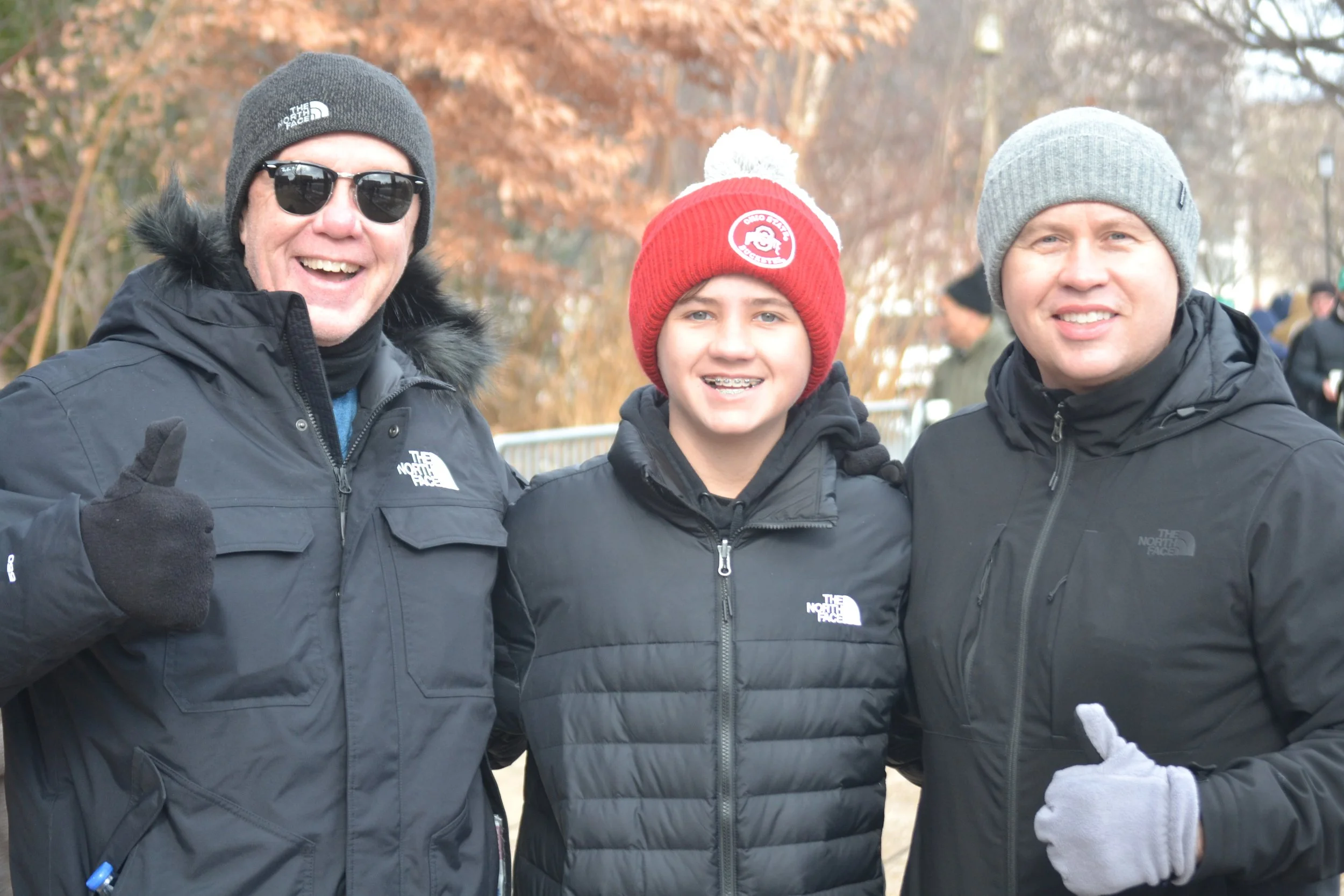 (Left to right) Father, grandson and son from Sunbury, Ohio give a “Trump thumbs up” for the camera. Photo via Lily Franks/The New Political