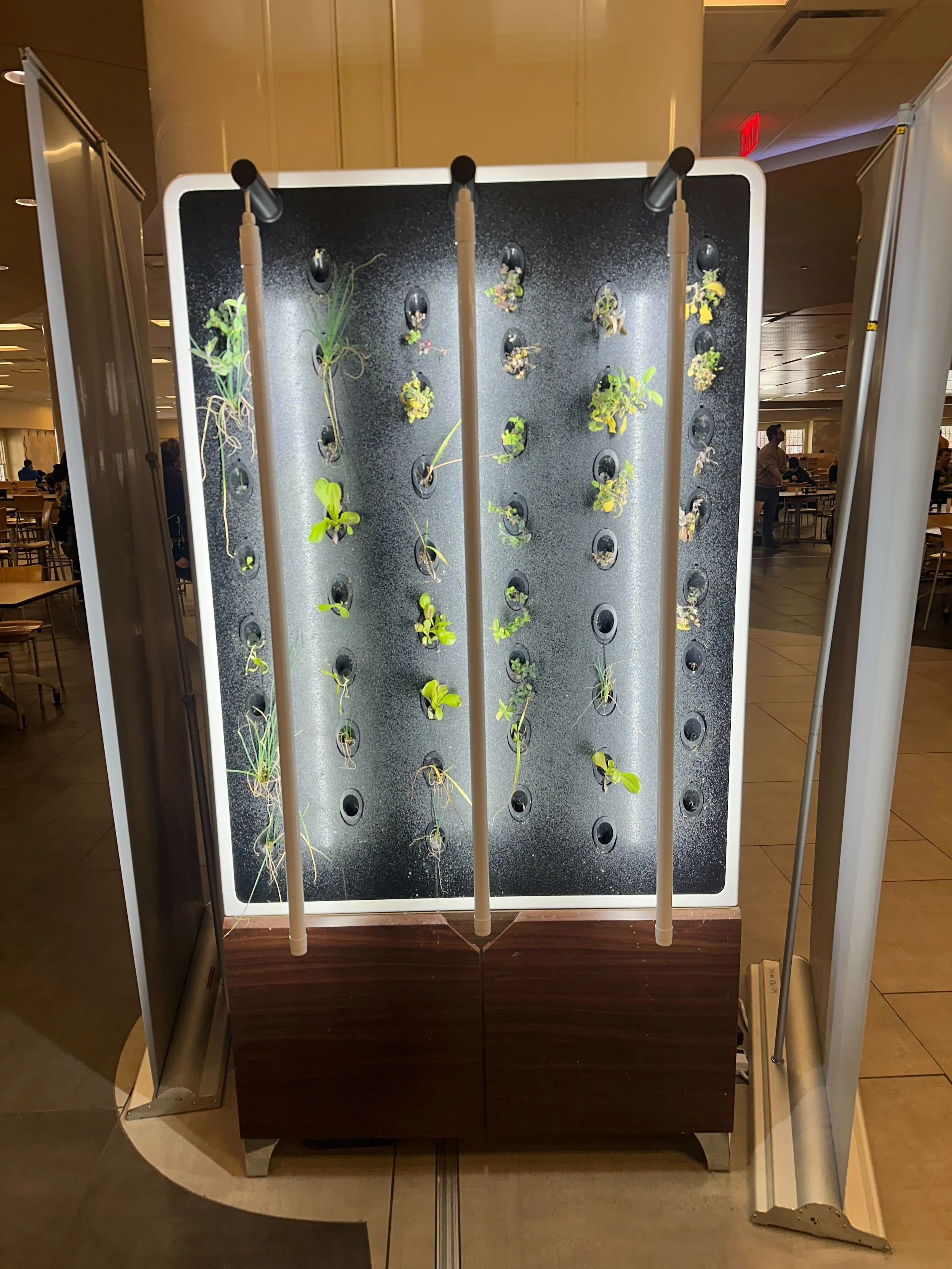 Hibbs believes this initiative is up front and center in the dining halls to increase student engagement; In contrast to the green spaces on the rooftops of Schoonover and Jefferson Hall, those are not easily seen, nor easily accessible. “Students who may be interested in going into sustainability or environmental science may be much more impacted on specific tours and seeing [the plant walls] in the dining hall, it’s a very unique thing.” Through the work-study program, students can develop their future careers in sustainability by gaining real-world experience in agriculture and environmental science.