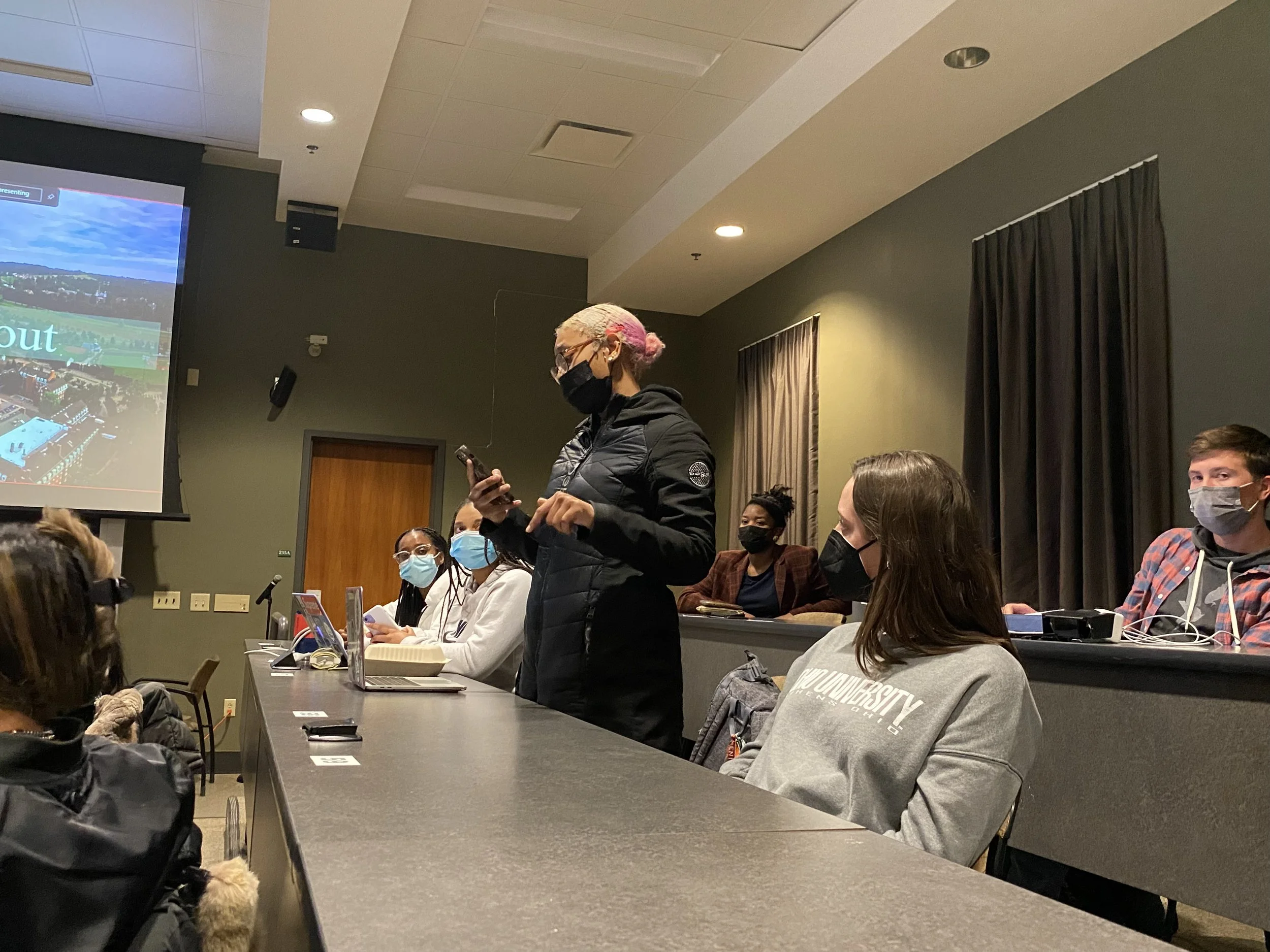 President of the NAACP chapter at Ohio U Odessa Robinson addresses the Senate’s lack of diversity. Photo by Audrianna Wilde.