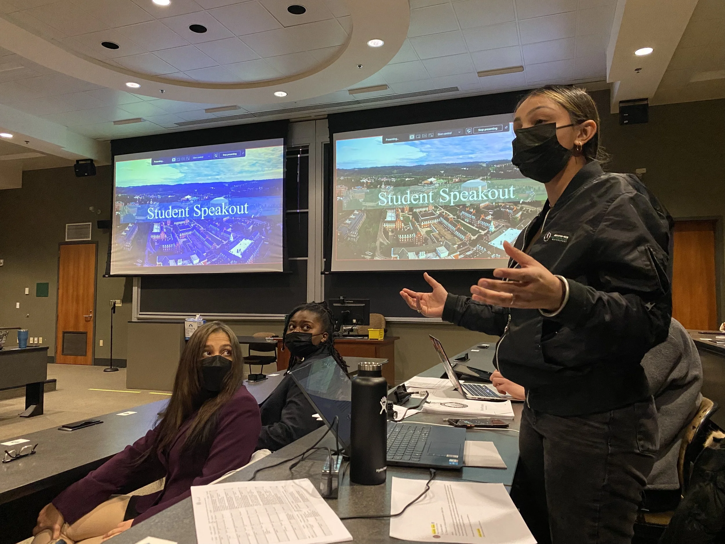 At Student Senate’s Wednesday meeting, students, alumni and current Senate members voiced their opinions and grievances regarding the Senate’s improper handling of the accusations against Kalkat and the events that followed her removal from the body. People filled the seats of room 235 in Walter Hall in support of Kalkat, at the Student Speakout session which lasted for over four hours.