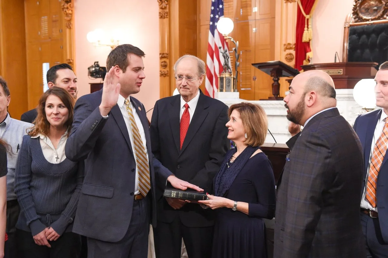 “Derek Merrin Sworn in as state representative of the 47th House District for the 132nd General Assembly in January 2017. He will now serve on the 135th General Assembly.” Photo via Ohiohouse.org