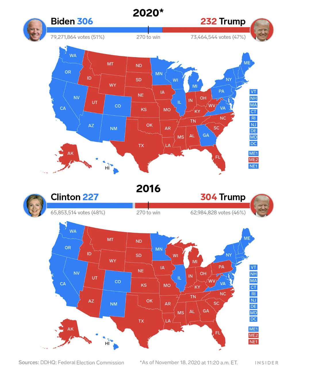 “The electoral vote count from 2016 and 2020” Photo by Shayanne Gal, Business Insider.