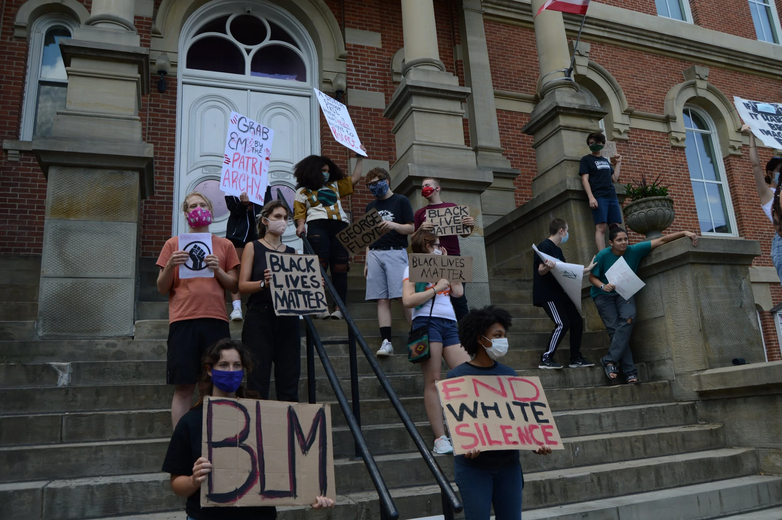 “Protest for the killing of George Floyd on the steps of the Athens County court house on May 30, 2020.” Photo courtesy of The New Political.